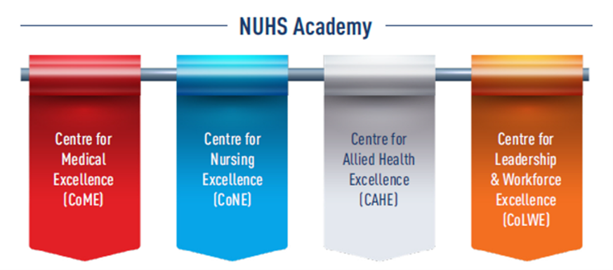 The National University Health System (NUHS) launched NUHS Academy as a one-stop training hub to provide upskilling and reskilling programmes for healthcare staff across the care continuum. It supports staff development of medical, nursing, allied health, administrative, and ancillary professionals, equipping our staff with skills to meet evolving healthcare needs.