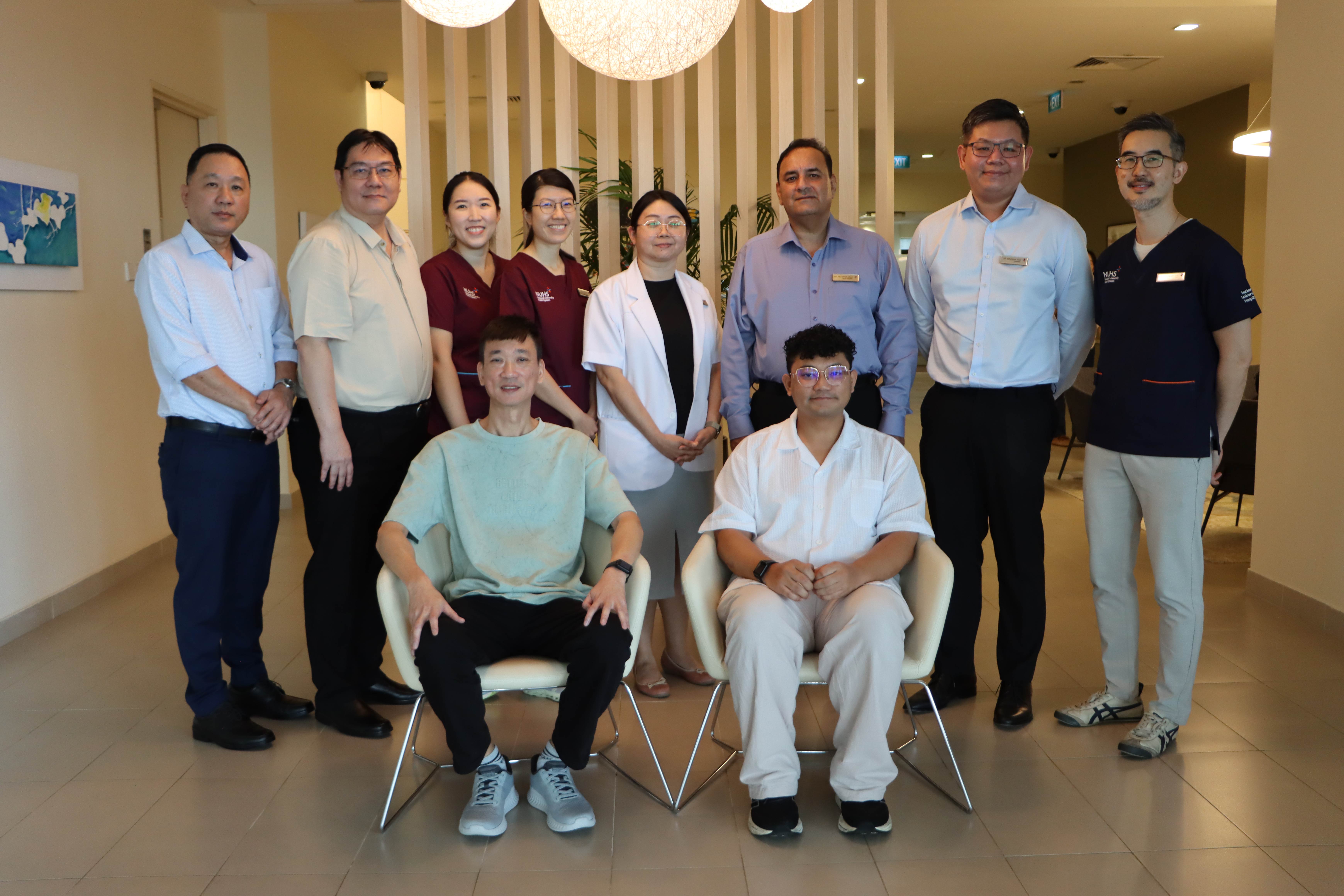 Patients Mr Chen Chye Song and Mr Nur Azhar Bin Hanafiah (seated, from left to right), with (standing, from left to right):SINGAPORE — While most young stroke survivors regain good physical function, many still struggle to return to work.