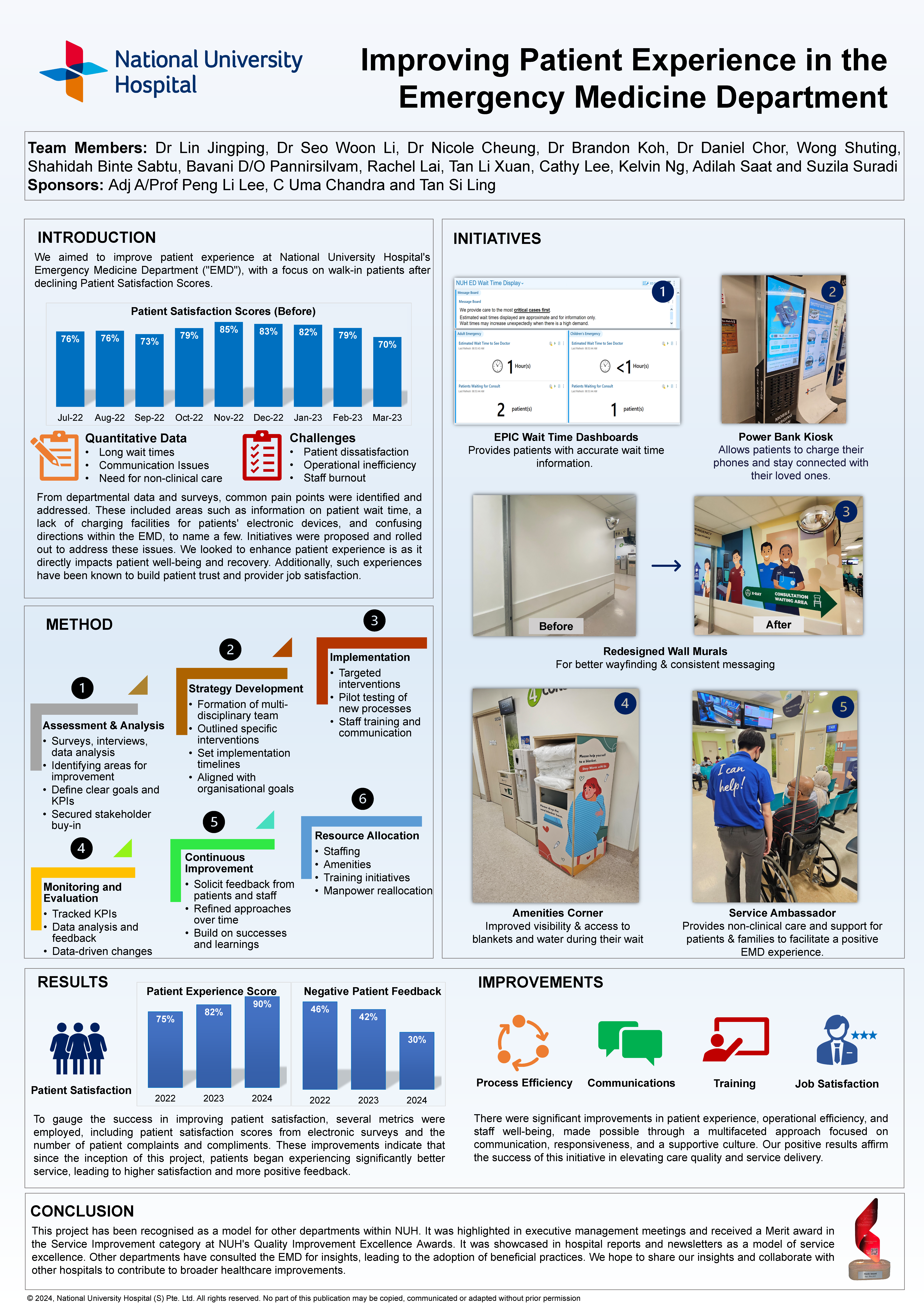 Our solution: National University Hospital implemented a comprehensive series of non-clinical interventions to enhance patient experience in the Emergency Medicine Department.