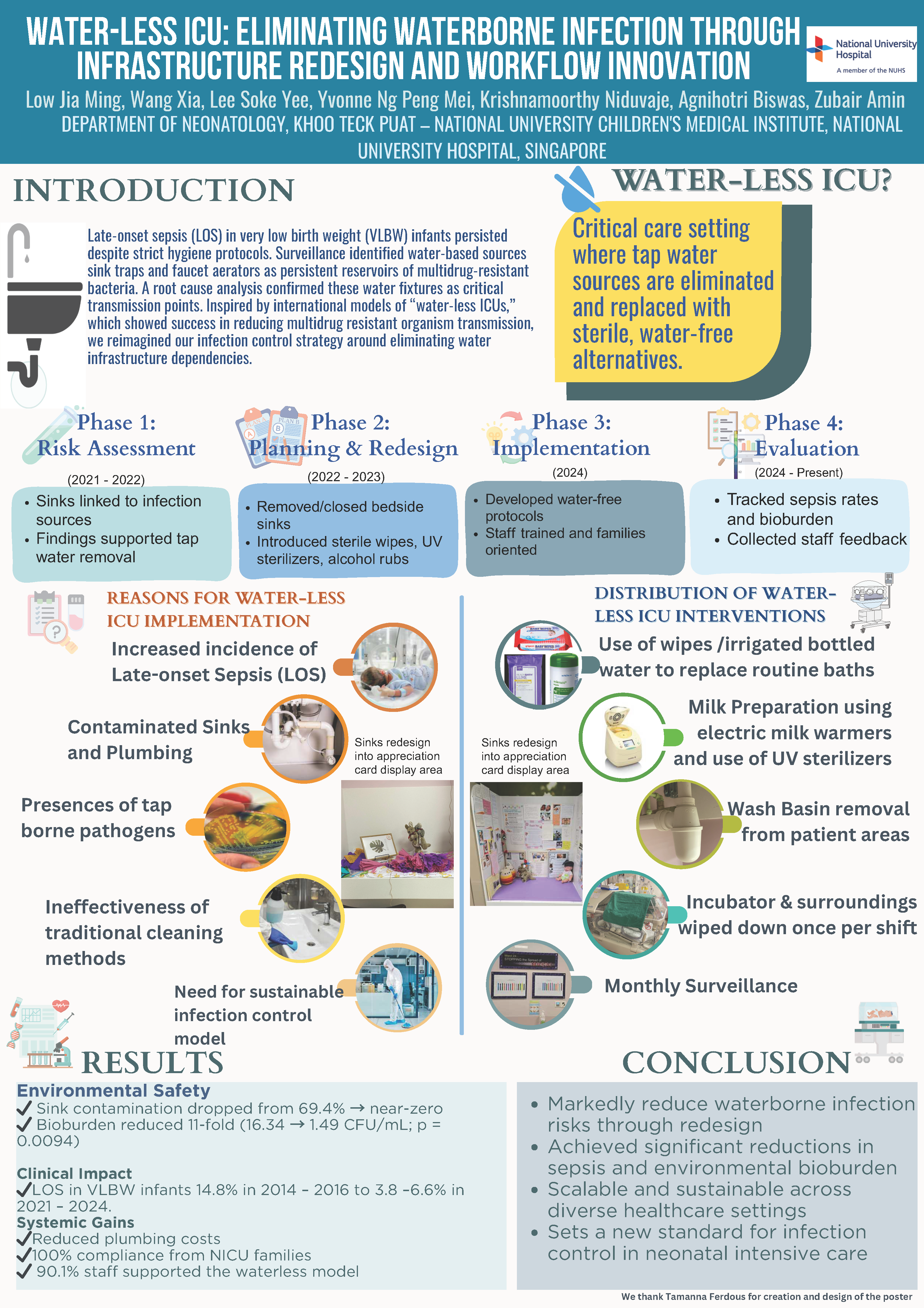 Our solution: The healthcare team implemented a "Water-Less ICU" model in the Neonatal Intensive Care Unit (NICU) at National University Hospital, Singapore, combining infrastructure redesign with innovative workflows.