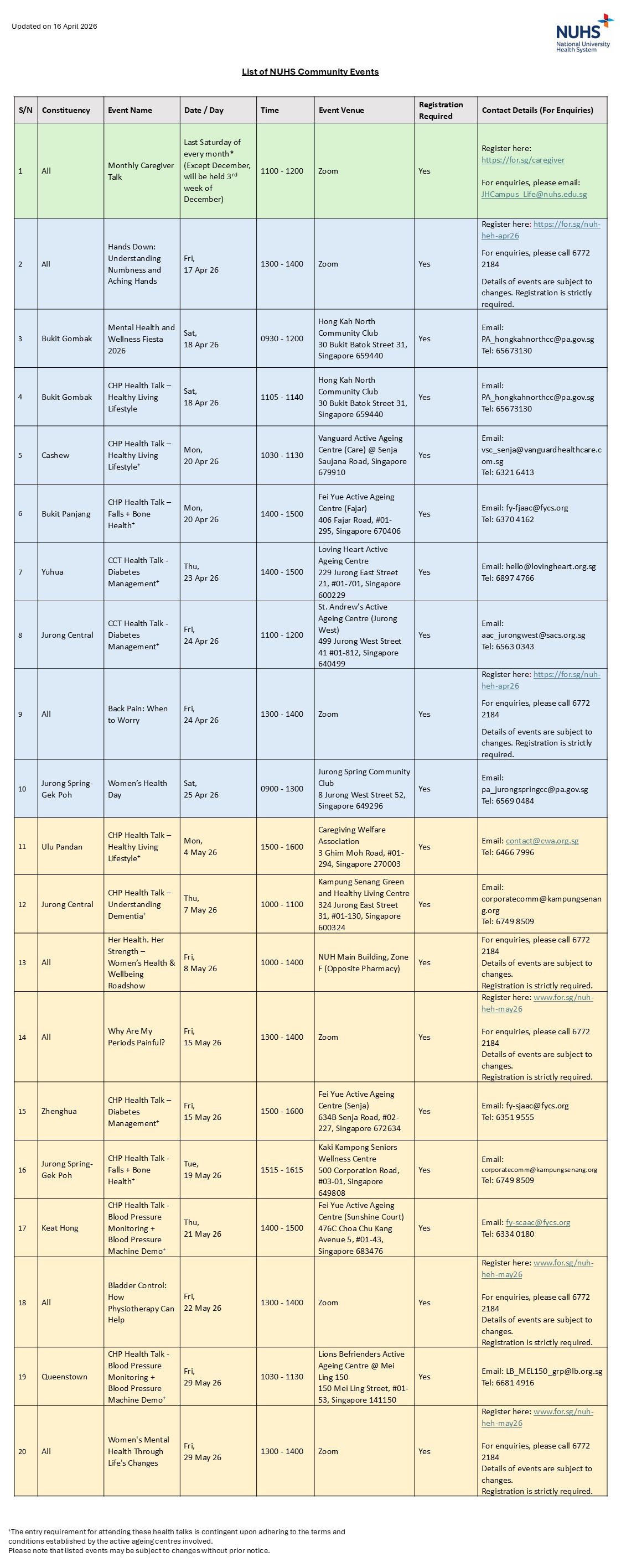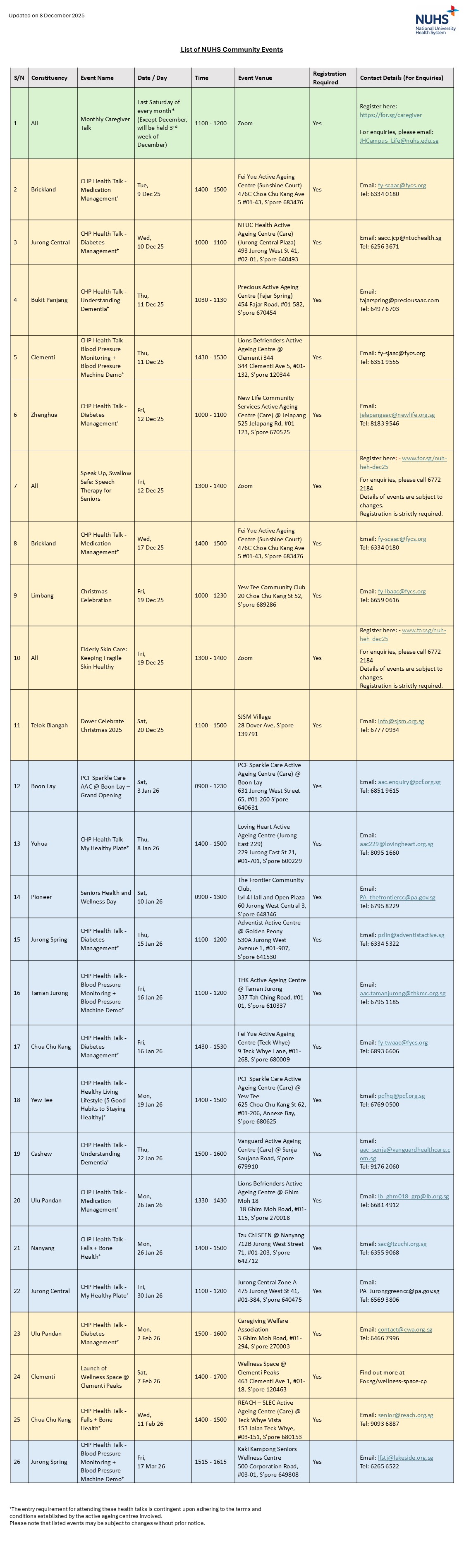 Please click here (PDF, 141 KB) or on the image below to download a clearer version of the list of NUHS Community Events
