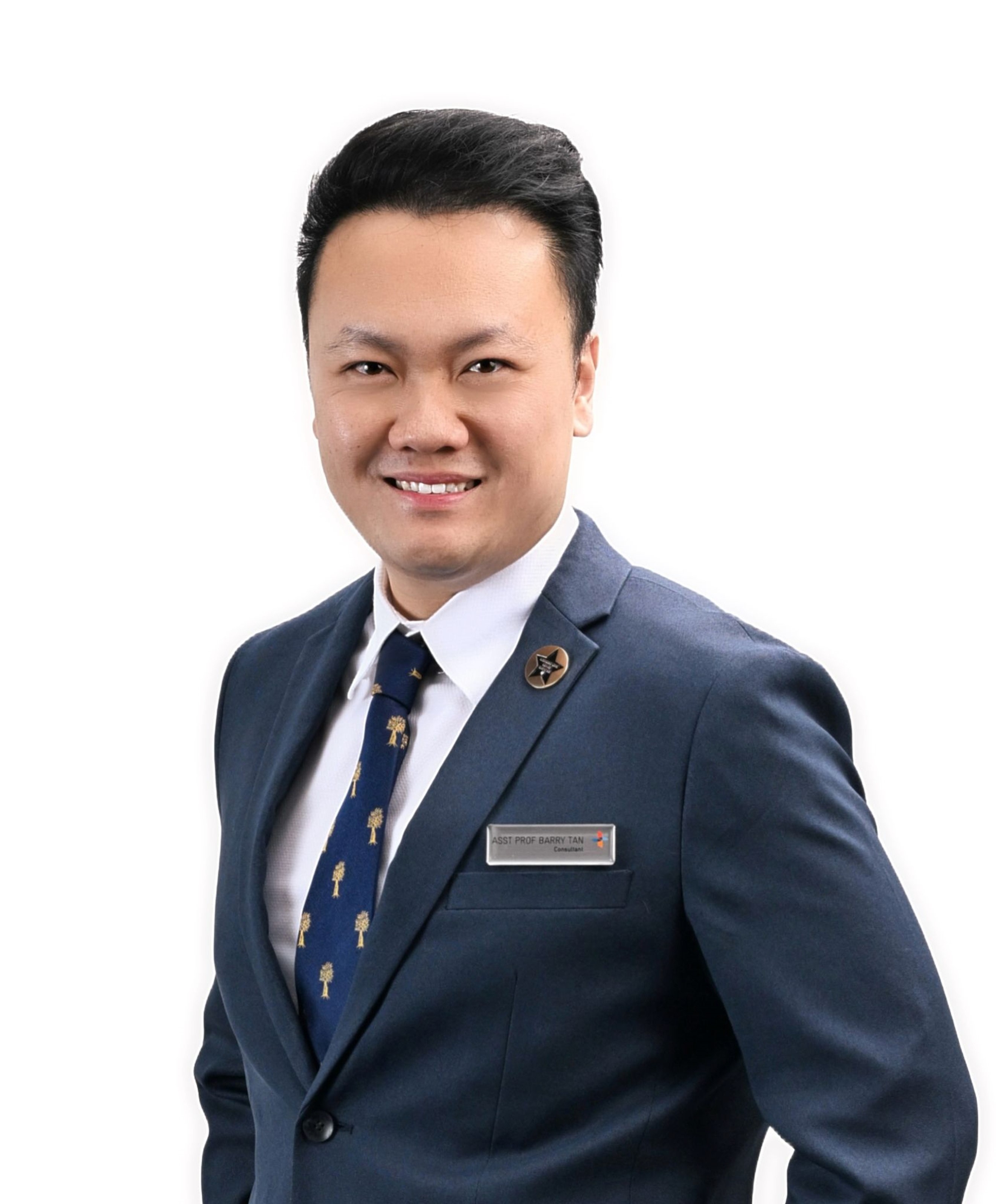 Adj Asst Prof Barry Tan graduated from the Yong Loo Lin School of Medicine, National University of Singapore (NUS) with a Bachelor of Medicine and Bachelor of Surgery (MBBS) degree and was awarded both the Eli Lilly and S.S. Ratnam Book Prizes. He was immediately selected post-graduation for specialist training into the distinguished NUHS Orthopaedic Surgery Residency Programme. In the course of his residency, he was elected as the Chairman of the NUHS' Residents committee, appointed a Member of the Royal College of Surgeons (Edinburgh) and conferred the NUS Master of Medicine (Orthopaedic Surgery). He completed his specialist training and was appointed as a Fellow of the Royal College of Surgeons (FRCS), Edinburgh. As the national top performing and first-placed candidate in the FRCS Specialist examinations, Adj Asst Prof Barry Tan was awarded the prestigious College of Surgeons Gold Medal in Orthopaedic Surgery.